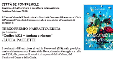 Terzo posto per il romanzo "CODICE B321 Andata e Ritorno", edito dalla Aletti Editore. Complimenti all'autrice Lucia Paoletti!